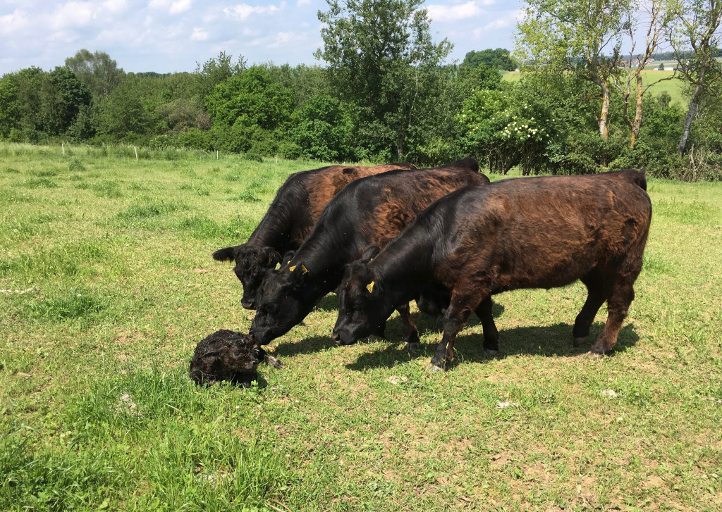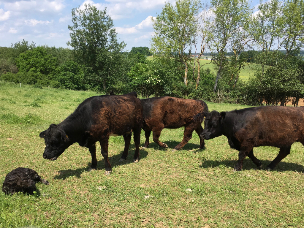 Eine große Überraschung erwartete uns, nachdem wir unsere ersten Galloways kauften. Wir fragten den ehemaligen Besitzer, ob es sein könnte, dass eine Kuh trächtig ist. Er verneinte dies, trotzdem wurde unsere Lisa immer dicker. Da wir uns schon dachten, dass sie trächtig ist, haben wir natürlich mit Spannung auf die erste Geburt eines Kälbchens gewartet. Am 26.05.2016 war es dann endlich soweit.