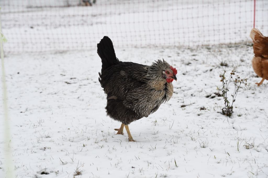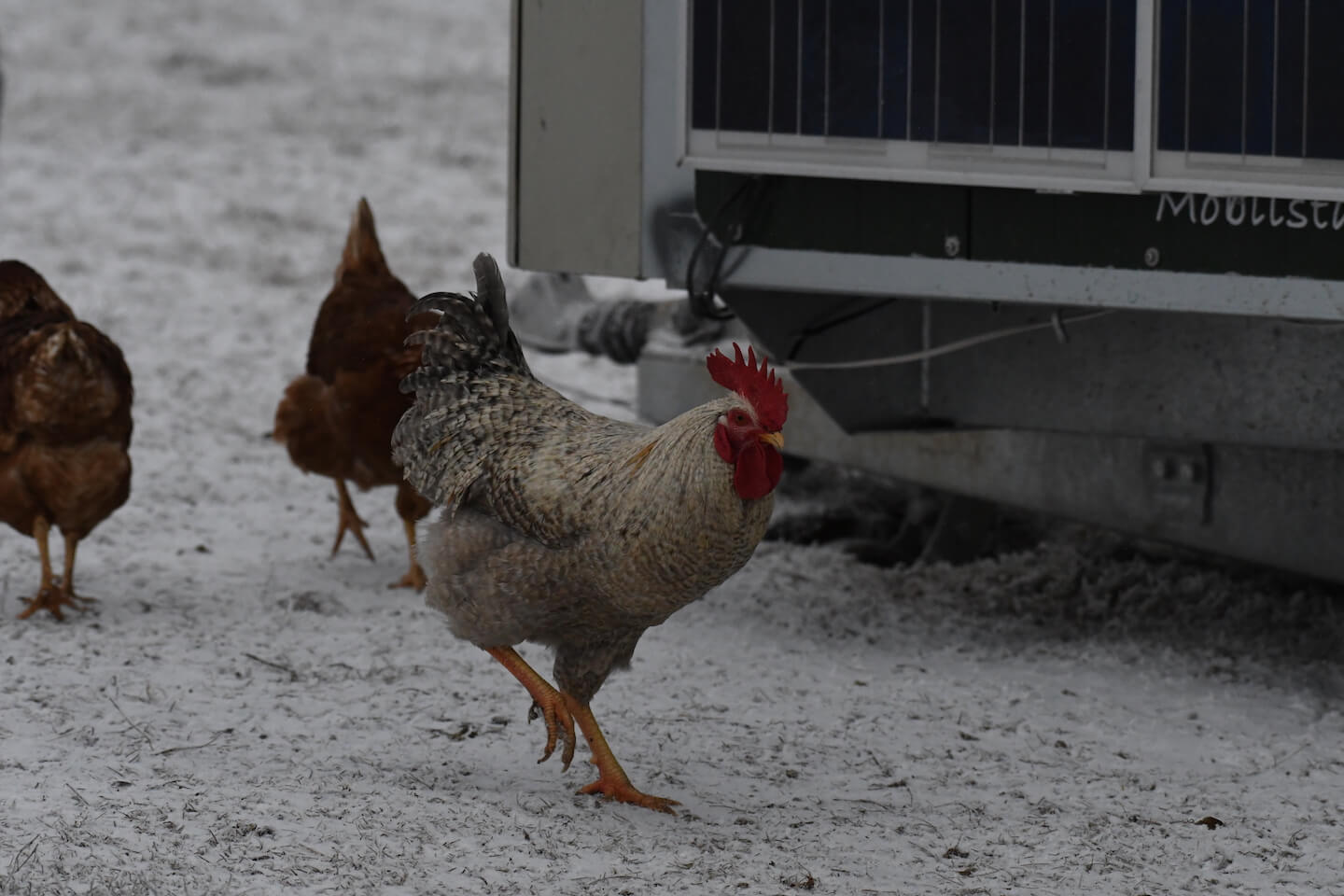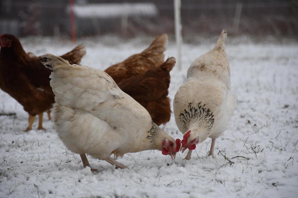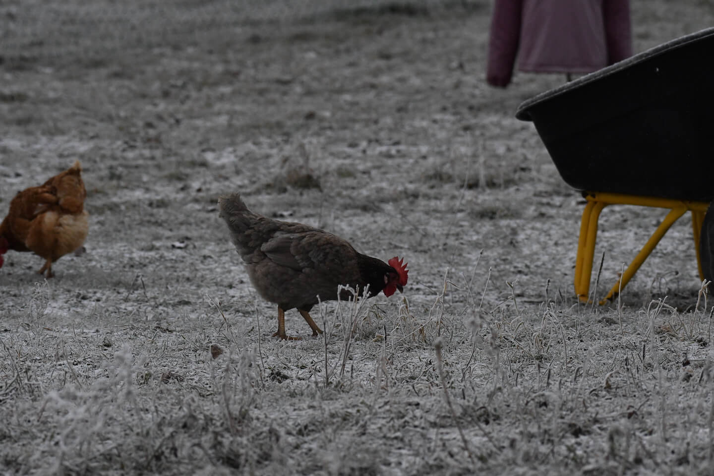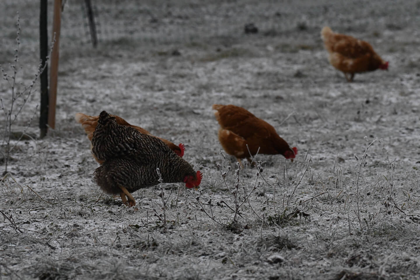 Was machen wir eigentlich, wenn’s uns zu kalt wird? Das was wir am Liebsten machen: Scharren und Picken. Dazu können wir auch in den Stall gehen. Meistens vertragen wir die Kälte aber besser, als die Menschen sich das vorstellen können 🙂