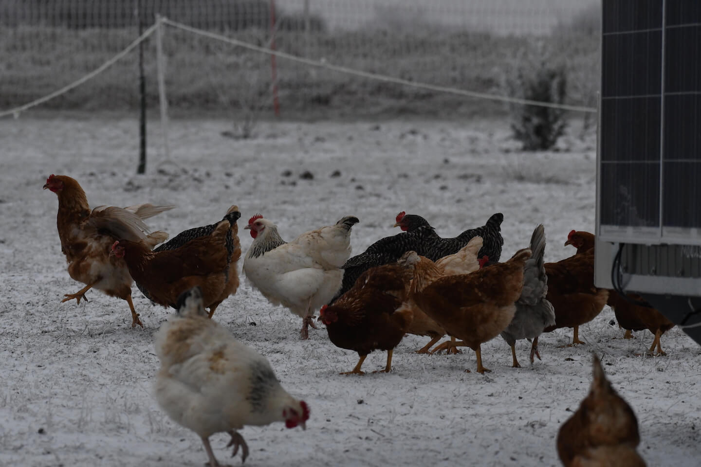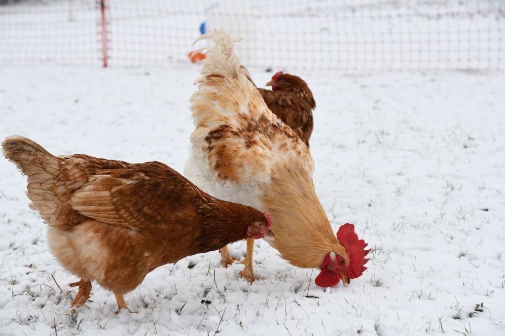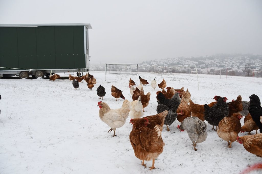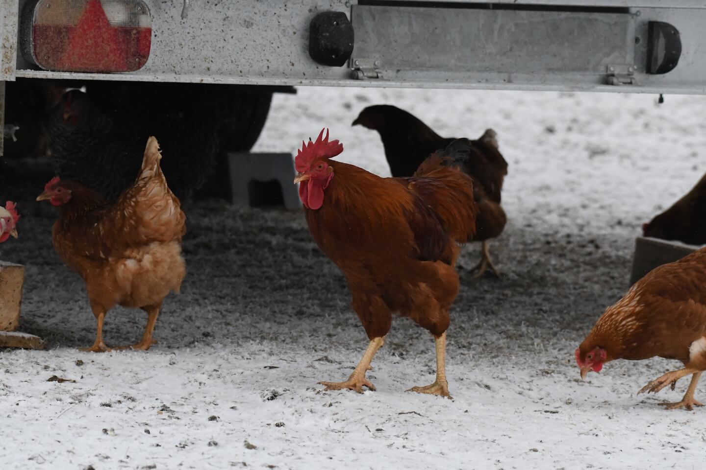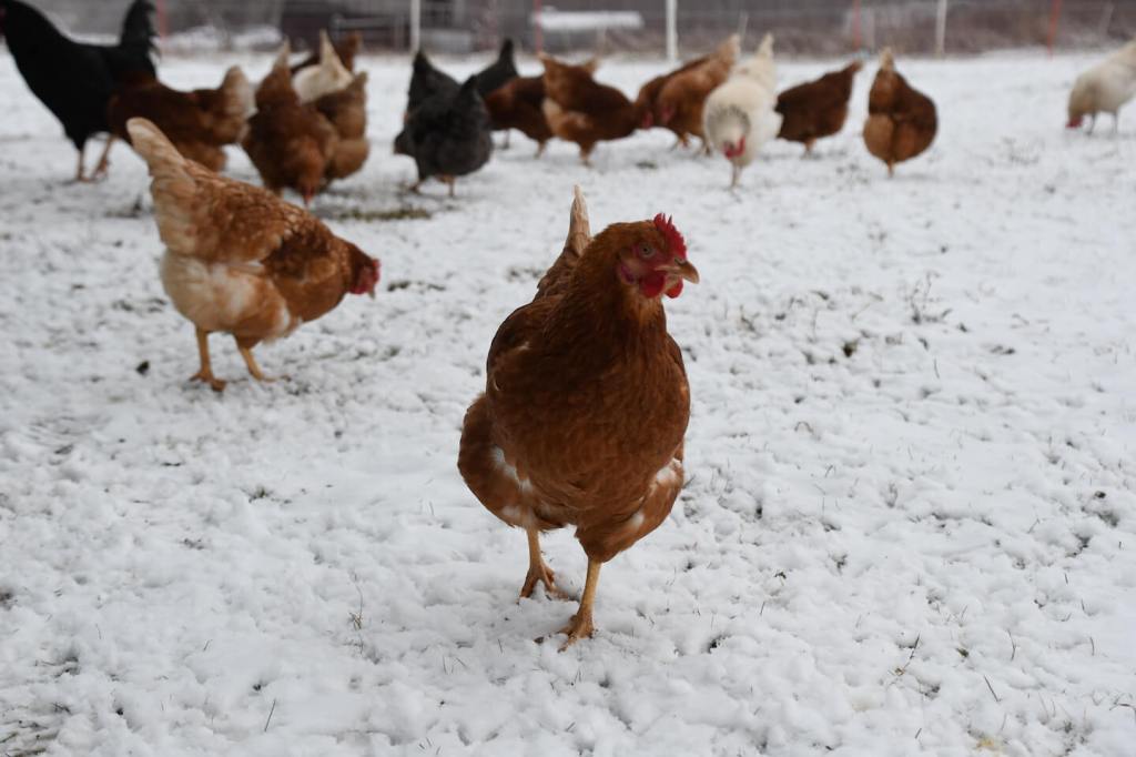 Was machen wir eigentlich, wenn’s uns zu kalt wird? Das was wir am Liebsten machen: Scharren und Picken. Dazu können wir auch in den Stall gehen. Meistens vertragen wir die Kälte aber besser, als die Menschen sich das vorstellen können 🙂