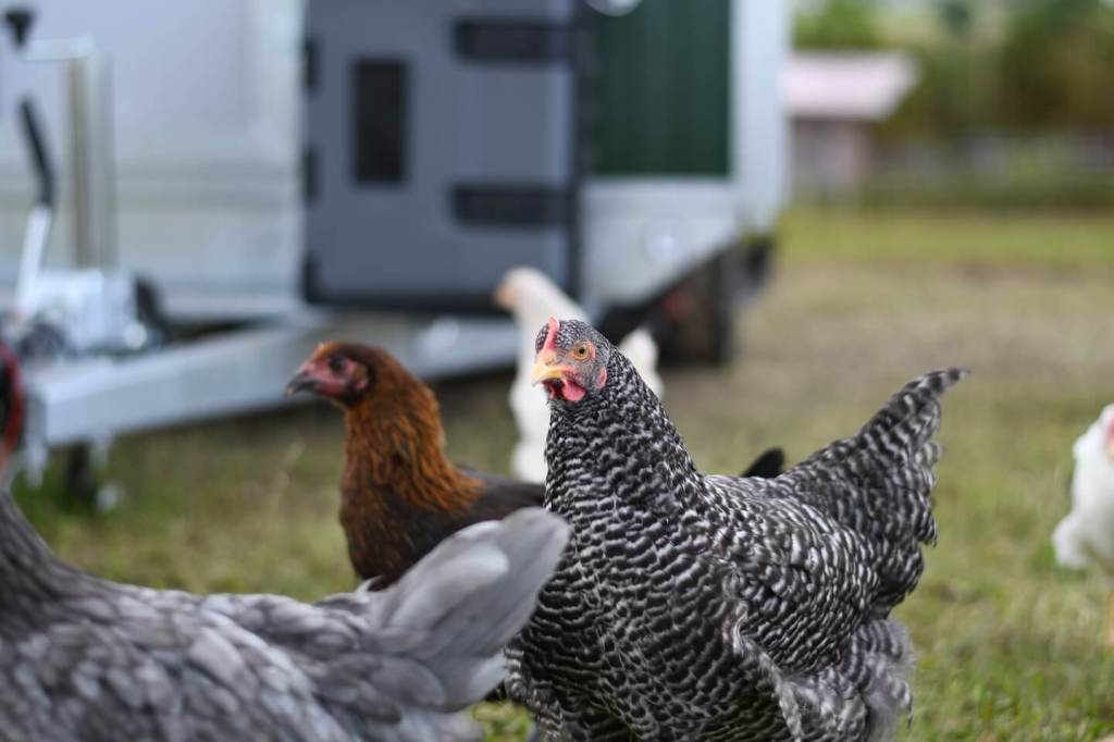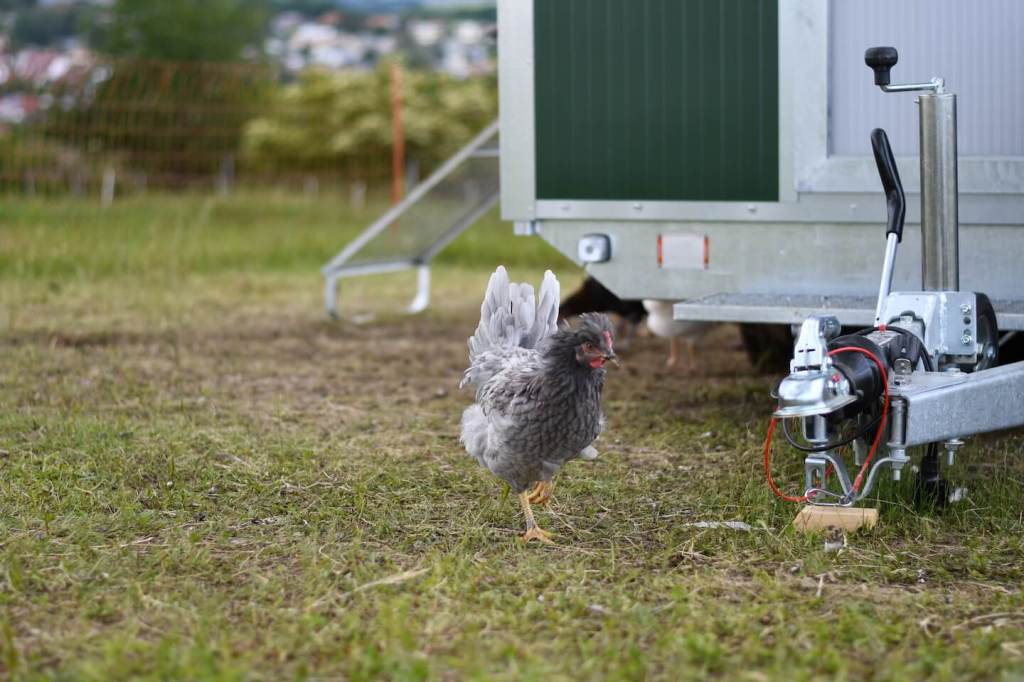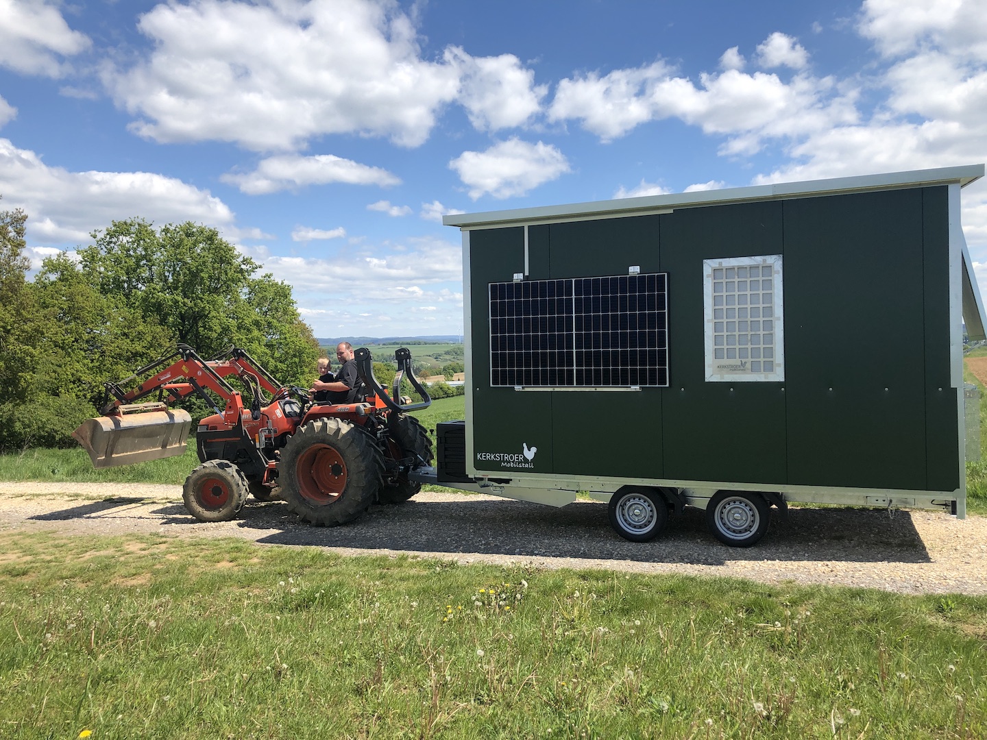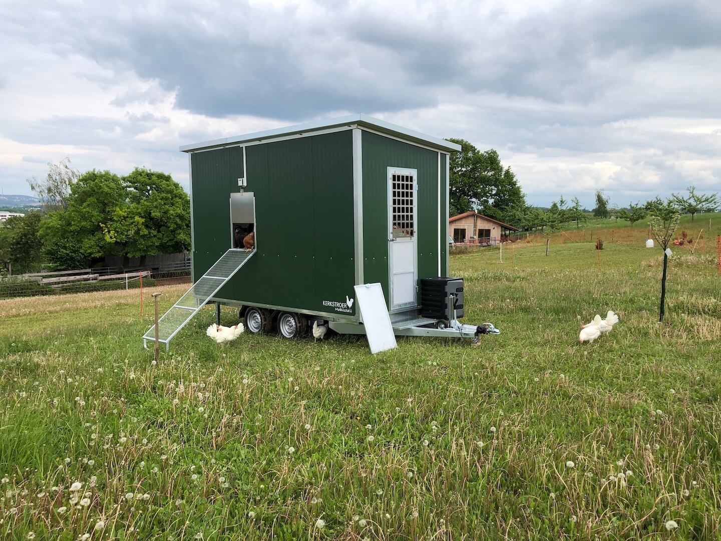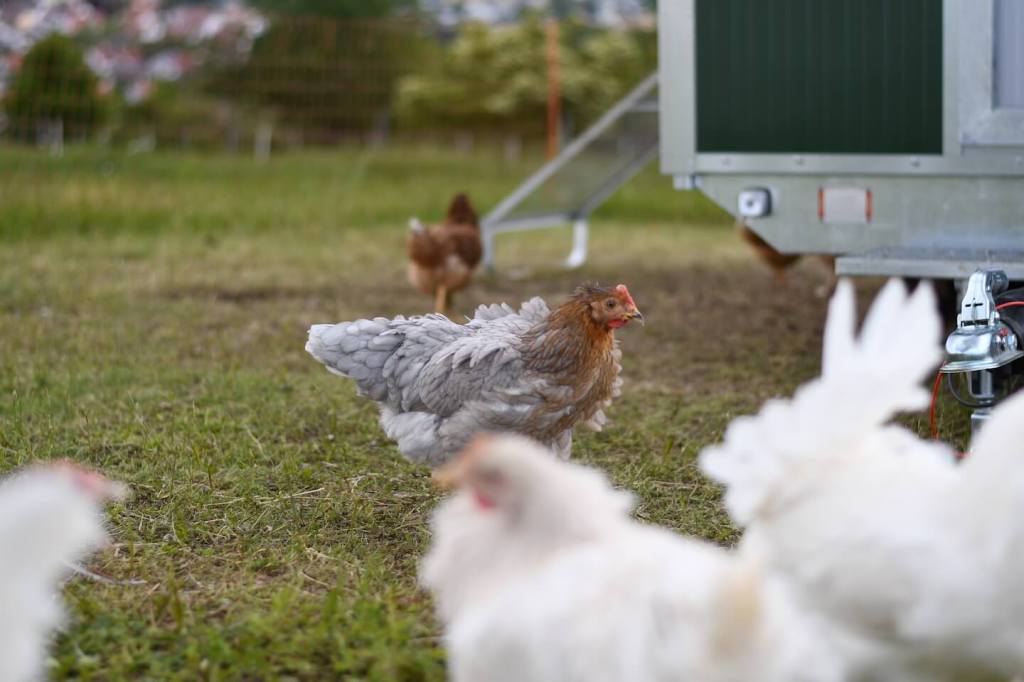 Um diese Verringerung der Legeleistung abzufangen und die größere Nachfrage bedienen zu können, haben wir am 06. Mai 2020 ein Hühnermobil für 120 Hühner bekommen.