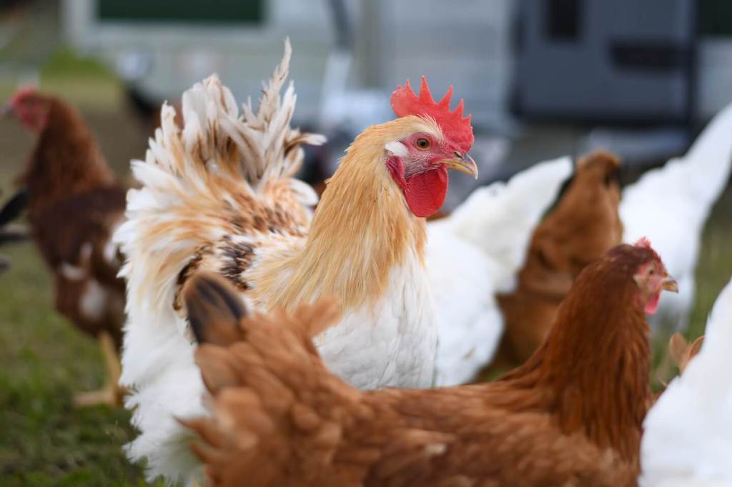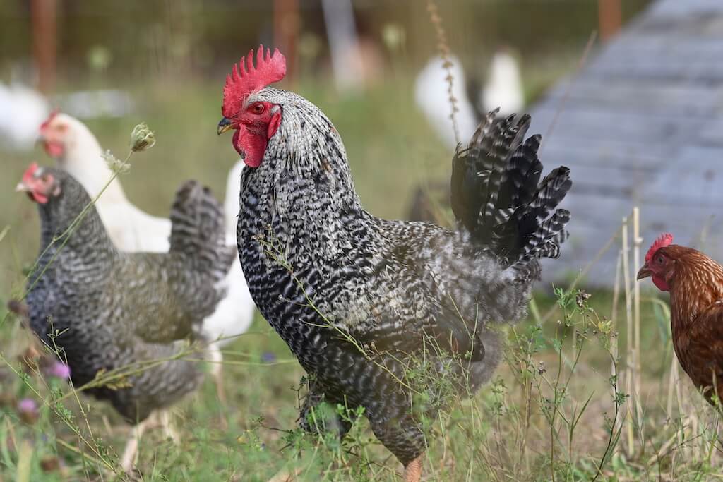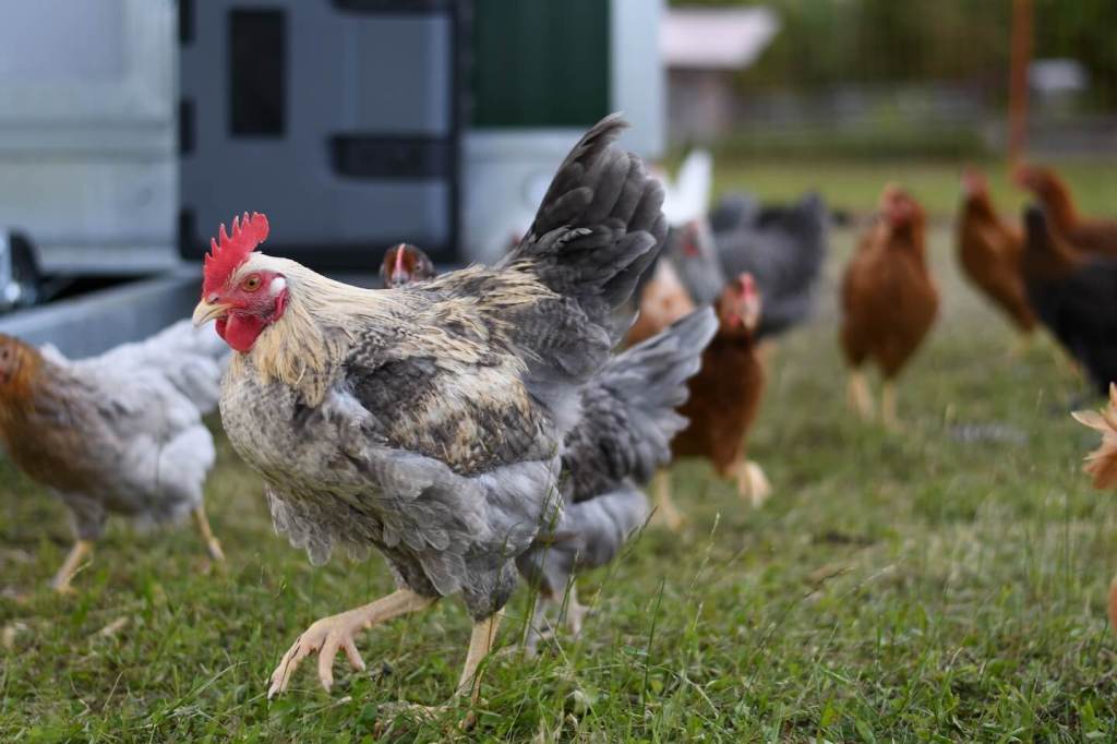 Der Aufbau beginnt, alle anderen Hühner schauen zu: