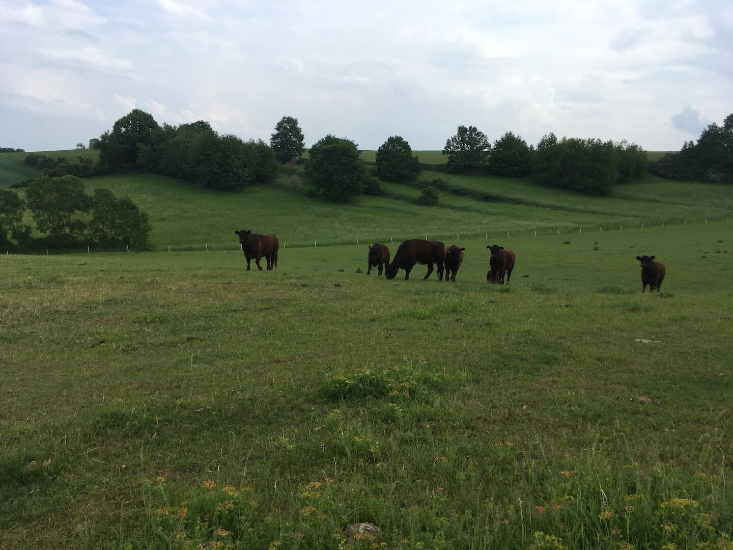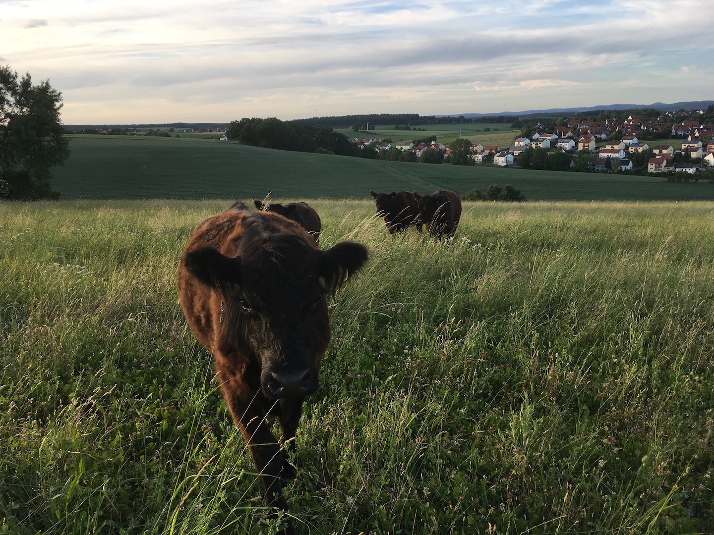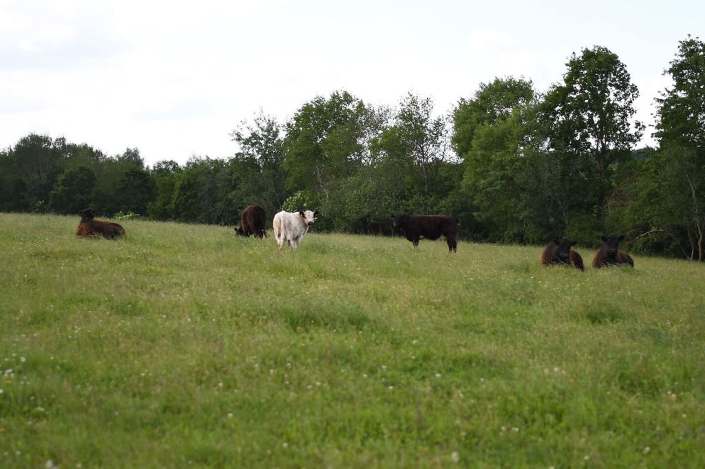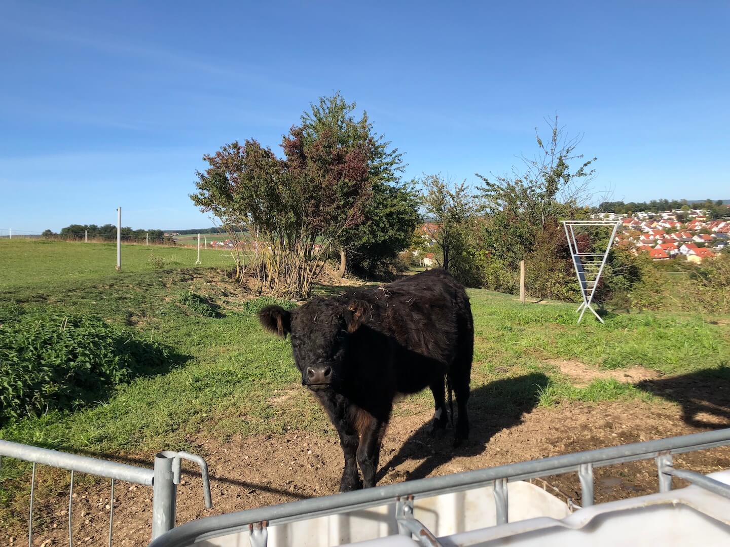 Wir sind eine kleine Galloway-Herde. Dank unserer Herkunft sind wir nicht für die Massentierhaltung geeignet – das ist hier zum Glück auch gar nicht gewollt. Wir sind das ganze Jahr über im Freien auf den Grünlandflächen unterwegs und suchen uns unser Futter selbst. Lediglich im Winter besuchen wir die Menschen zweimal täglich, wenn wir Heu zum fressen bekommen. Durch unsere natürliche Haltung auf den 7 Hektar benötigen wir weder Entwurmungsmittel noch Antibiotika.